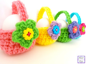These Little Egg Baskets are a fun project to crochet that can hold a single egg or perhaps a treat. A super easy to crochet basket is finished with a beautiful one round flower and a cheery button center.